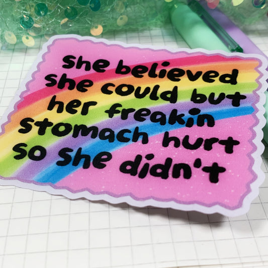 She Believed She Could, But Her Stomach Hurt, So She Didn't - Vinyl Sticker