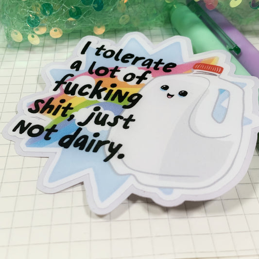 I Tolerate A Lot Of Fucking Shit, Just Not Dairy - Vinyl Sticker