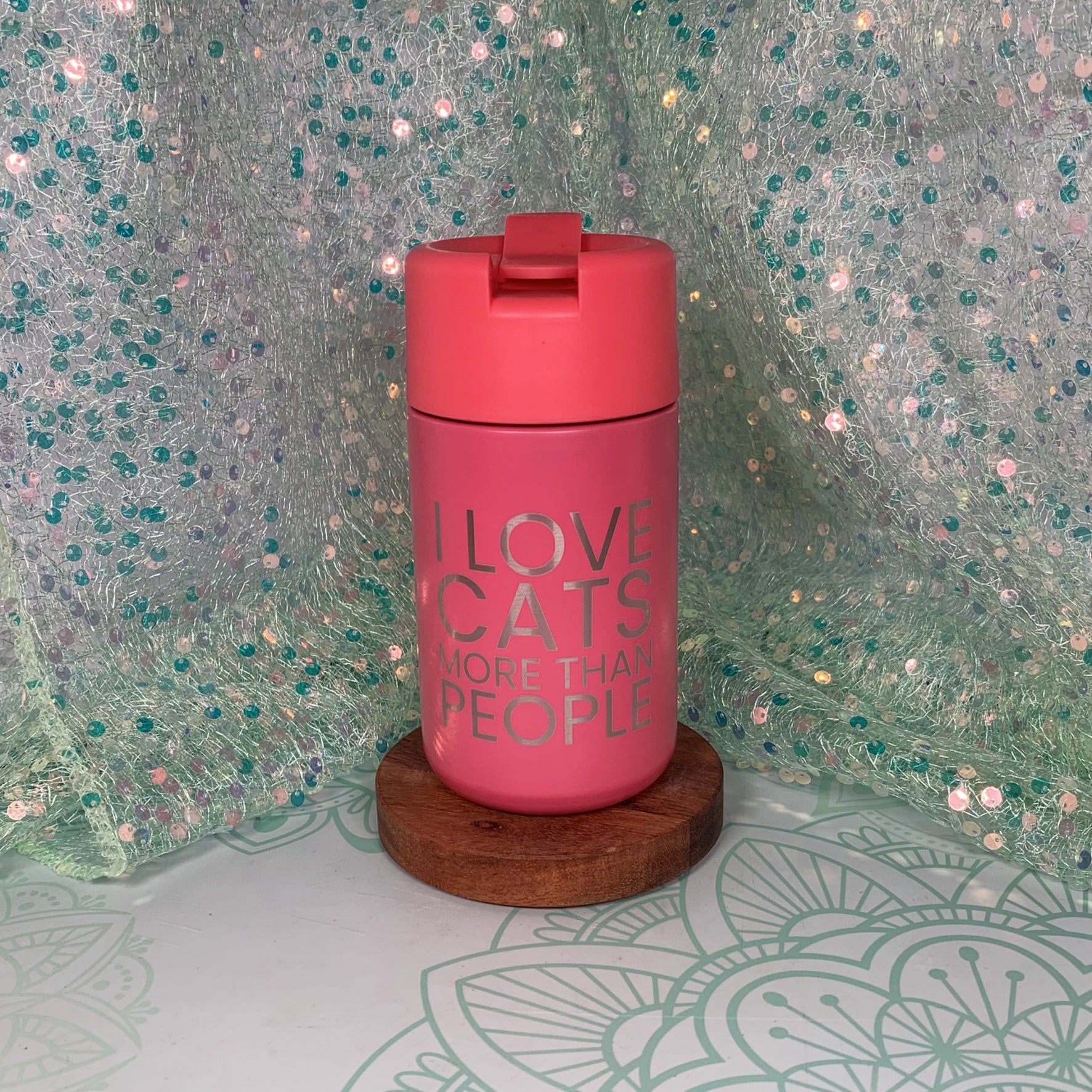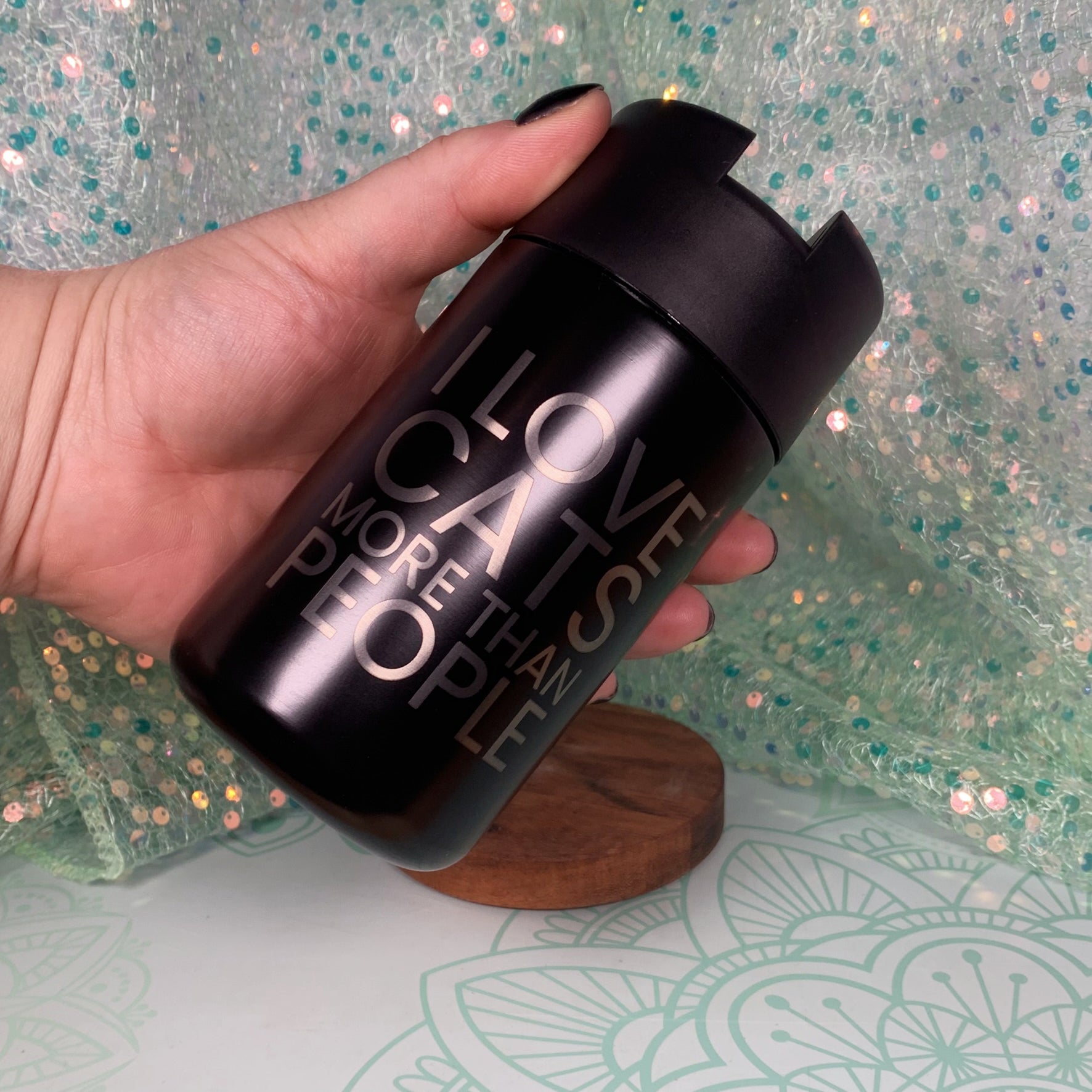 For the feline enthusiast who knows where their true loyalties lie — this mug says what everyone else is already thinking. Crafted from sleek stainless steel and engraved with your unapologetically cat-loving declaration, it’s the purr-fect companion for coffee, tea, or whatever keeps you human-adjacent before 9am.